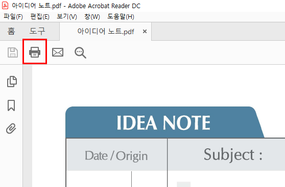 PDF 파일을 연 다음 인쇄 버튼을 클릭한다.