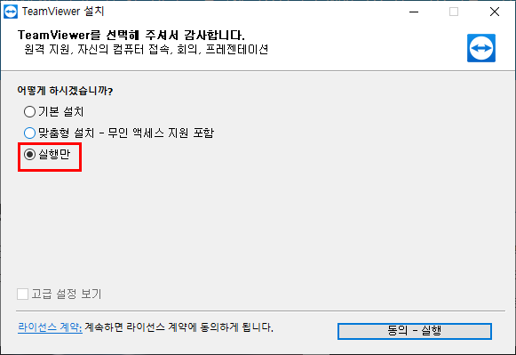 4. "실행만" 선택(1회성 사용)