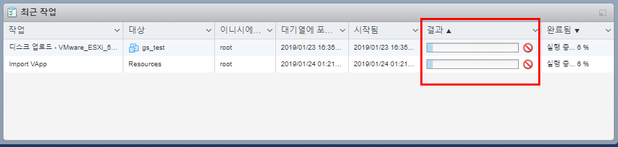 5) 완료 후 최근 작업 창을 통해 진행률 확인